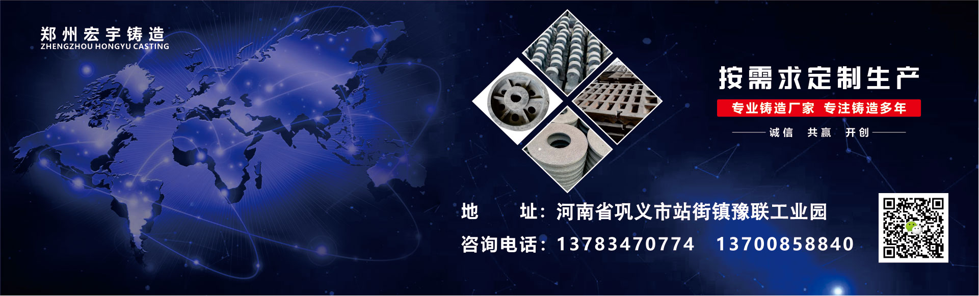 鄭州宏宇鑄造位于河南省鄭州鞏義市是鑄造件廠家,主要生產(chǎn)生鐵機(jī)械配件、耐磨襯板、耐磨錘頭、合金耐磨錘頭、制砂機(jī)錘頭、鑄鋼件、高鉻合金鑄件、球墨鑄鐵件、消失模工藝鑄件、砂型工藝鑄件等!來(lái)樣即可加工。 我們技術(shù)力量雄厚、設(shè)備齊全,目前有高級(jí)技師數(shù)名,技術(shù)人員數(shù)十名,能滿足客戶的不同需求,來(lái)圖來(lái)樣均可生產(chǎn),而且為了確保產(chǎn)品質(zhì)量進(jìn)一步得到完善和提高, 確保供貨及時(shí)達(dá)到客戶的滿意,我們采用優(yōu)質(zhì)原材料及先進(jìn)的制造工藝!